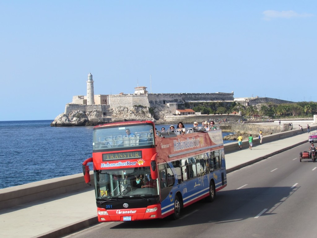 Uma das melhores formas de conhecer o Malecón pela primeira vez com certeza será através do City Tour que percorre toda a cidade de Havana em um ônibus de 2 andares. O ponto inicial e final desta linha de ônibus está localizado no Parque Central, em frente ao Hotel Inglaterra (veja post exclusivo aqui no Blog Cuba Libre). Por um custo de 10 CUC por pessoa, o passageiro pode usar esta linha o dia inteiro, das 09:00 até as 18:10. Ao longo do dia, o turista pode descer e subir quantas vezes quiser no ônibus, em qualquer uma das paradas pré-definidas no circuito turístico.